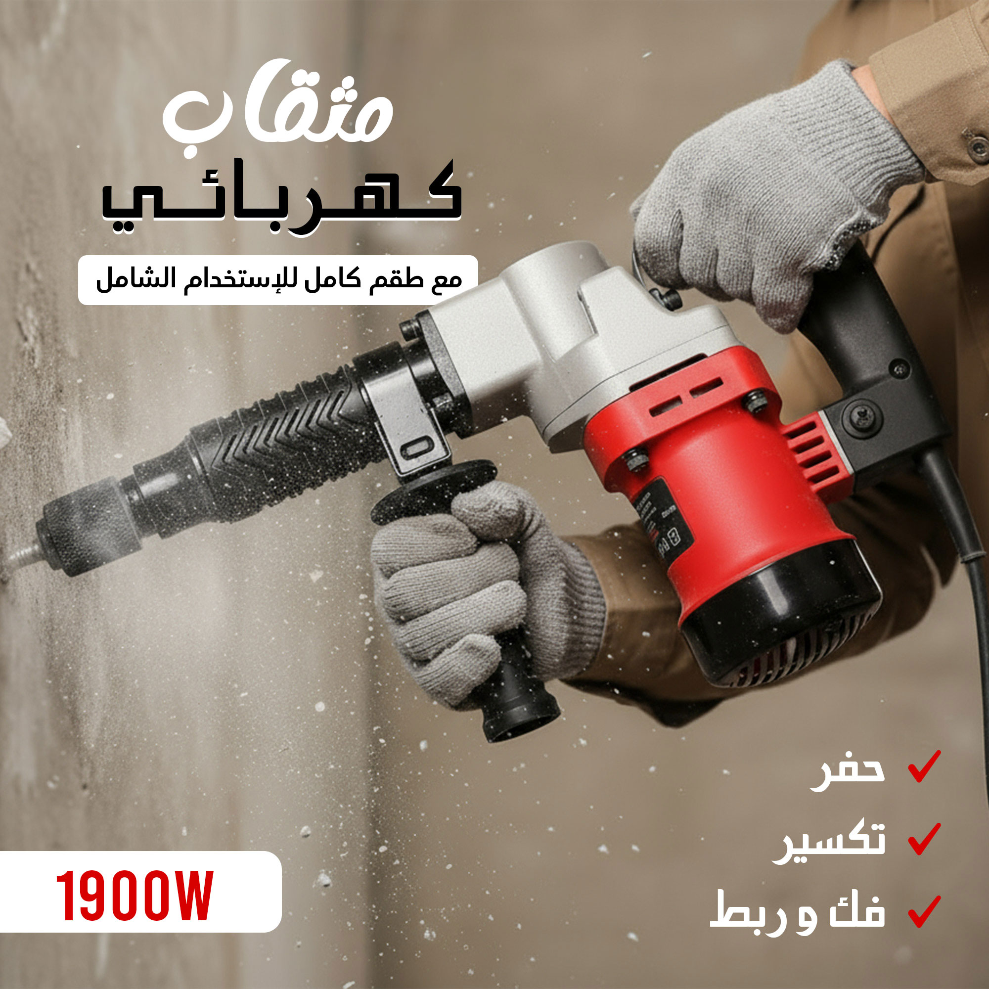 فيه وظيفة مطرقة للحفر في الجدران والخرسانة.